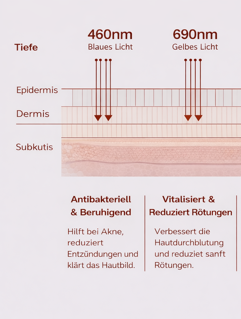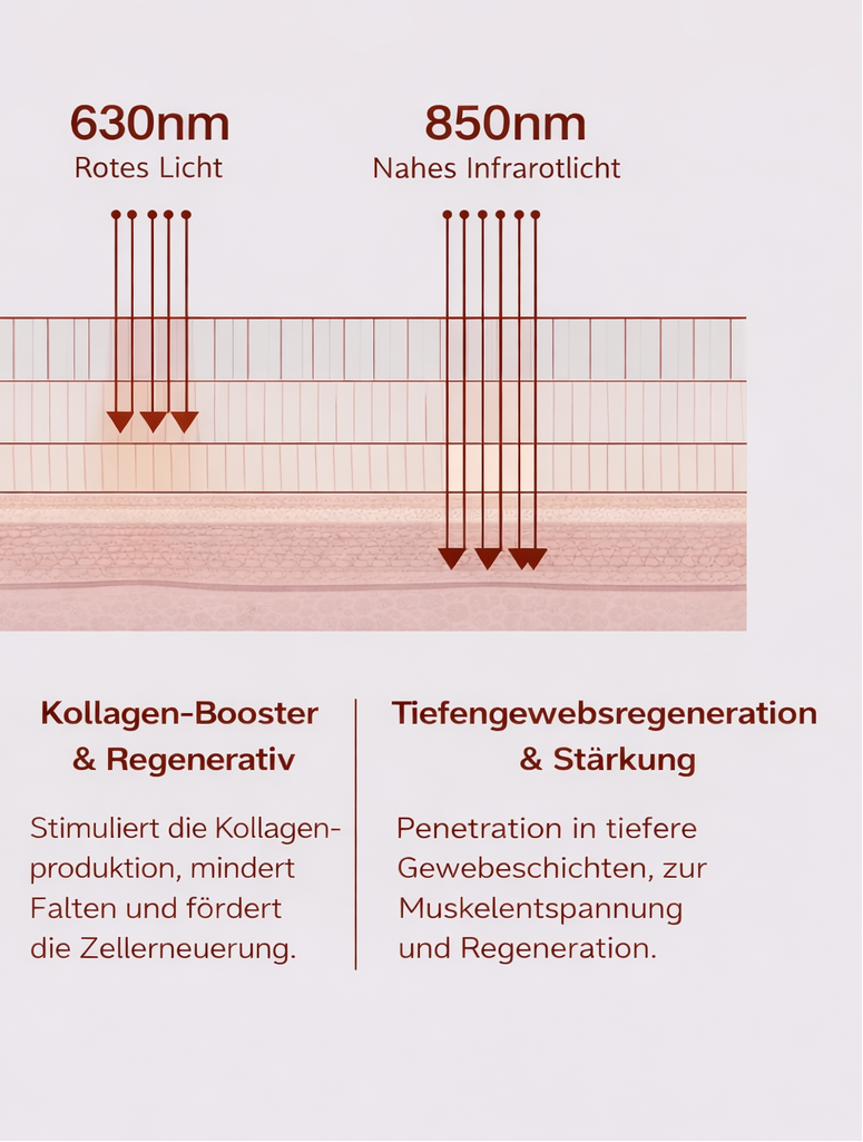 🔴 Infrarotes Licht Dringt besonders tief in die Haut ein und unterstützt die Regeneration sowie die Hautstraffung.